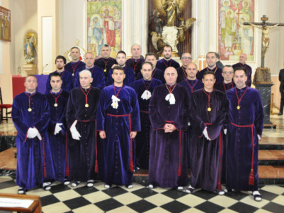 Actuando de padrinos, según figura en una placa conmemorativa que se colocó en un lateral de la propia Anda, D. Francisco Carles Salvador y D. Josefa Terencio Ferrer, quienes reciben al mismo tiempo las dos primeras insignias de oro que entrega la Hermandad.